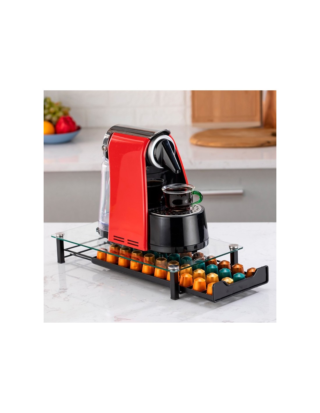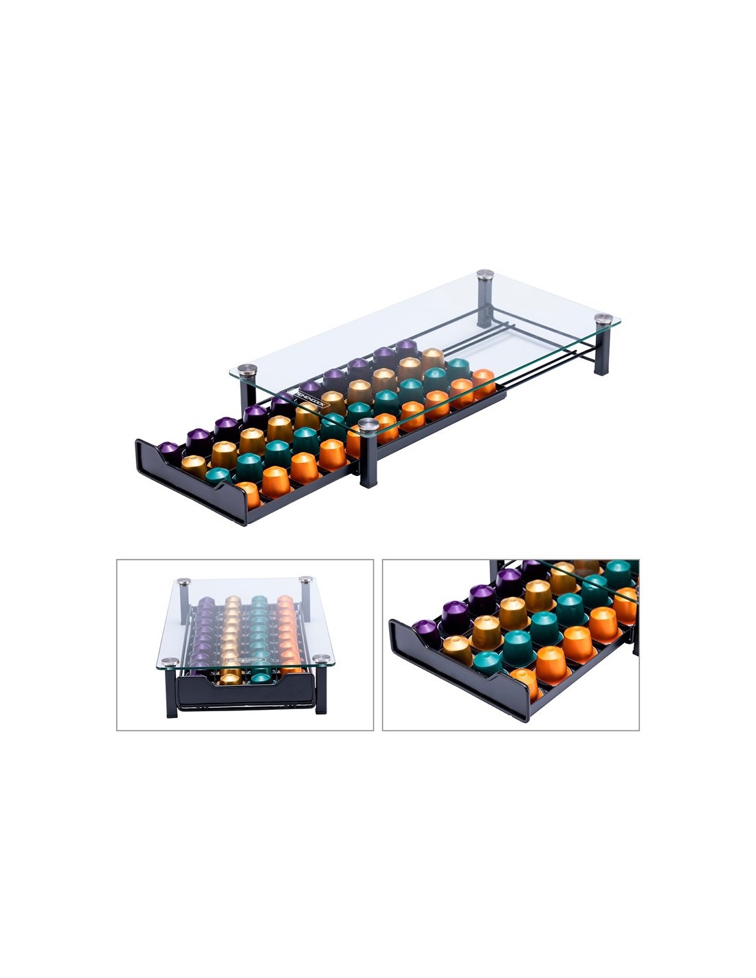 Le range capsules TIR40 de Kitchencook dispose de 1 tiroir divisé en 4 compartiments pour une capacité totale de 40 capsules Nespresso.