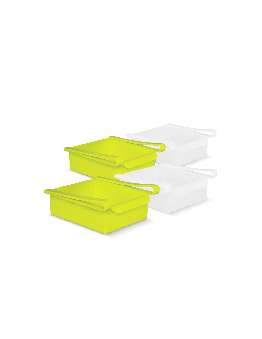 Ce lot de tiroirs organiseurs de réfrigérateur HTF4 de Harper Home est composé de 2 tiroirs transparents et 2 verts