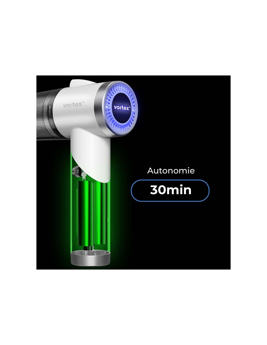 Le CRC90 de Vortex : l'aspirateur à main pliable sans fil avec éclairage LED. Compact, puissant et facile à entretenir.