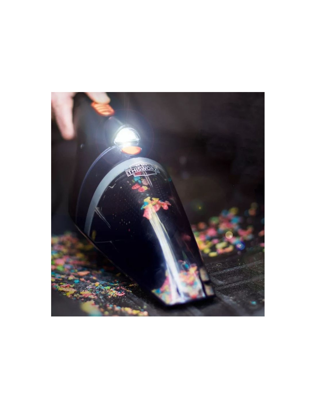L'aspirateur à main TWC02_BLACK de ThisWorkx est votre compagnon de nettoyage idéal pour la voiture, doté d'un LED intégré pour nettoyer efficacement les recoins, d'un cordon extra-long de 4,9 m et de deux filtres HEPA pour éliminer les cendres, la poussière et les déversements alimentaires.