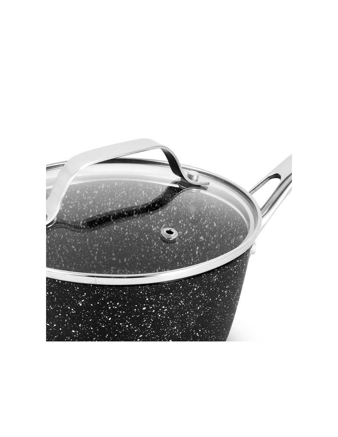 L'aluminium forgé de haute qualité permet d'avoir une meilleure répartition de la chaleur, de manière homogène et surtout sans adhérence. Grâce à son revêtement effet pierre à l'intérieur et à l'extérieur, vous cuisinerez différemment : Aucune adhérence, diffusion de la chaleur plus efficace, cuisson sans graisse et plus rapide.
