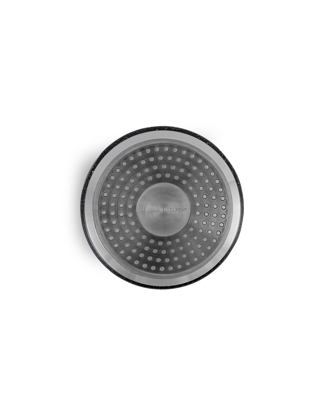 - Revêtement intérieur : anti adhésif avec effet pierre pour une cuisson avec peu de matière grasse