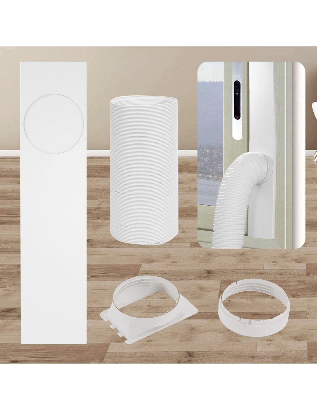KIT FENÊTRE : Le kit fenêtre est composé d'un tube d'extraction de 1.5m. C'est l'accessoire indispensable pour empêcher l'air chaud extérieur d'entrer.