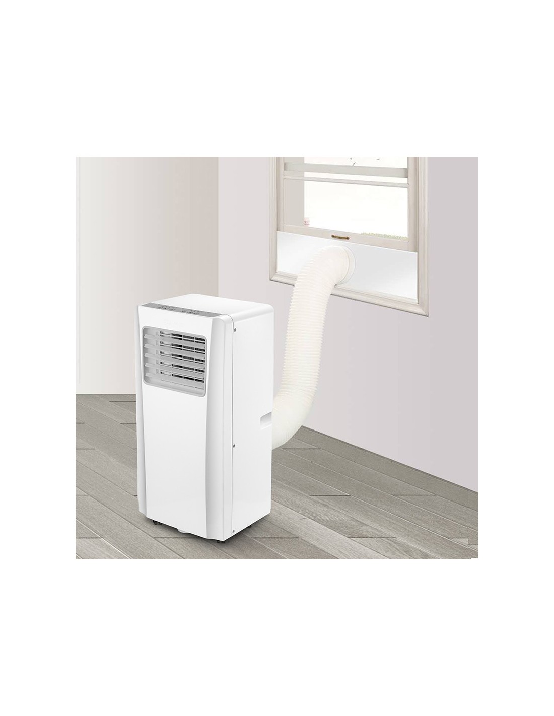 • Eléments livrés avec : télécommande, poignée de transport, 4 roues, tube d'extraction, kit fenêtre et un filtre amovible.