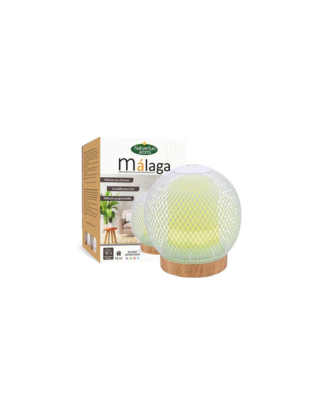Transformez votre espace en un sanctuaire de bien-être avec le diffuseur Malaga de NATUR'SUN AROMS, alliant diffusion ultrasonique, humidification et éclairage LED pour une ambiance apaisante.