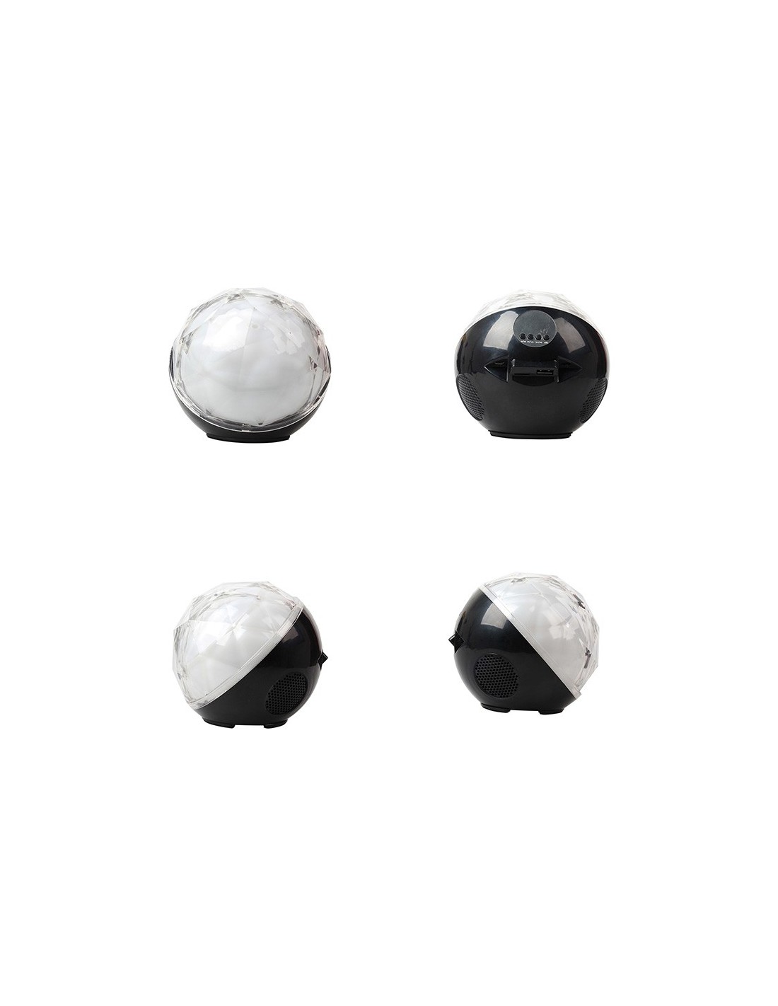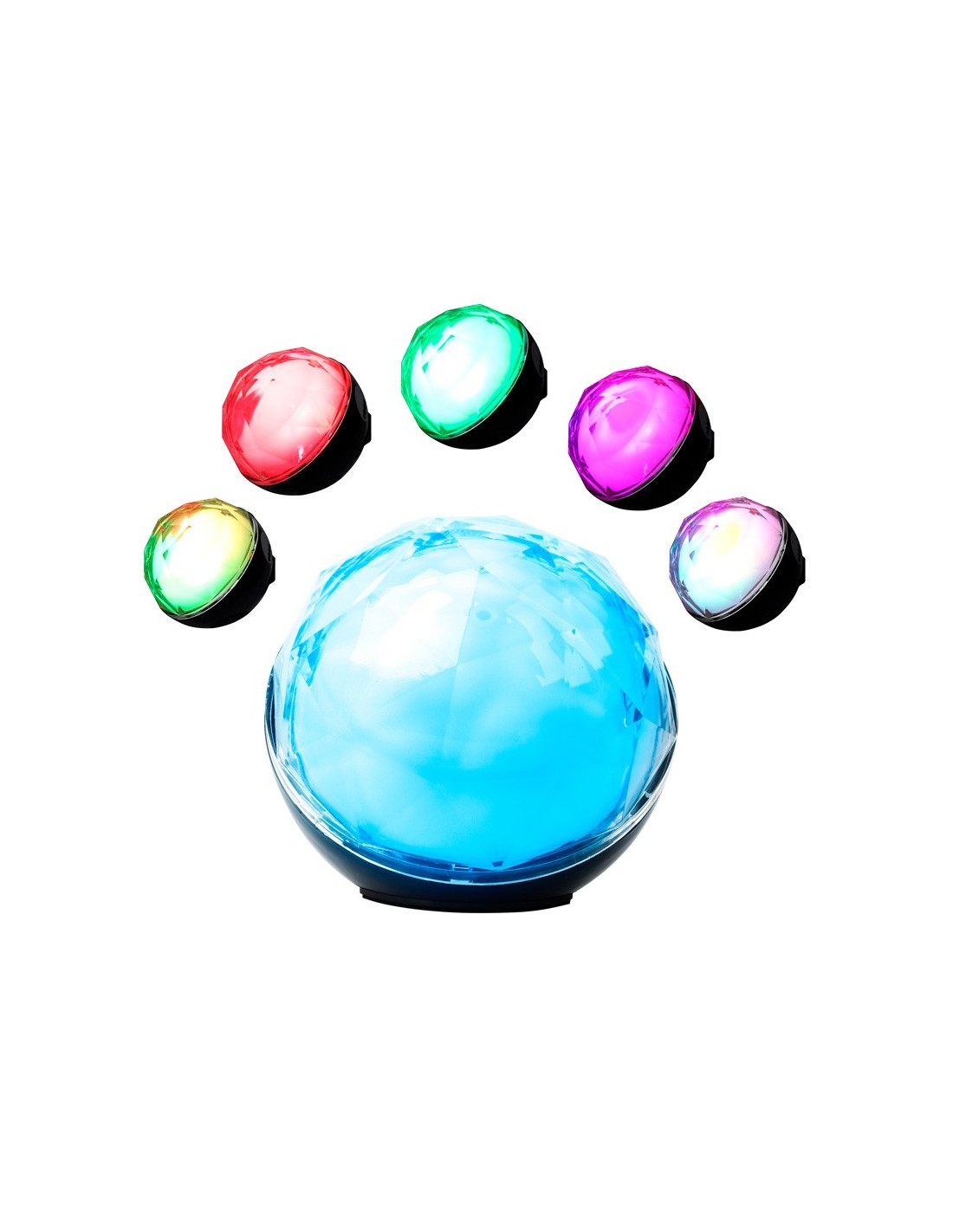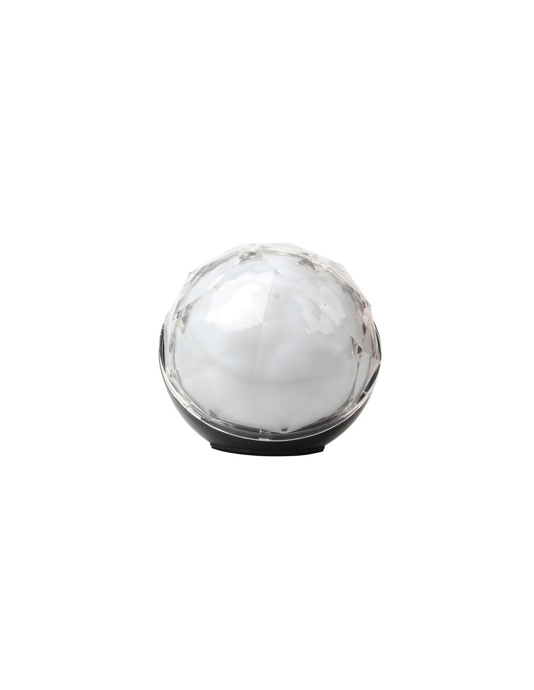 L'enceinte DYSCO diffuse la musique sans fil via n'importe quel lecteur audio compatible bluetooth et répand ses formes lumineuses colorées sur les murs et plafonds.