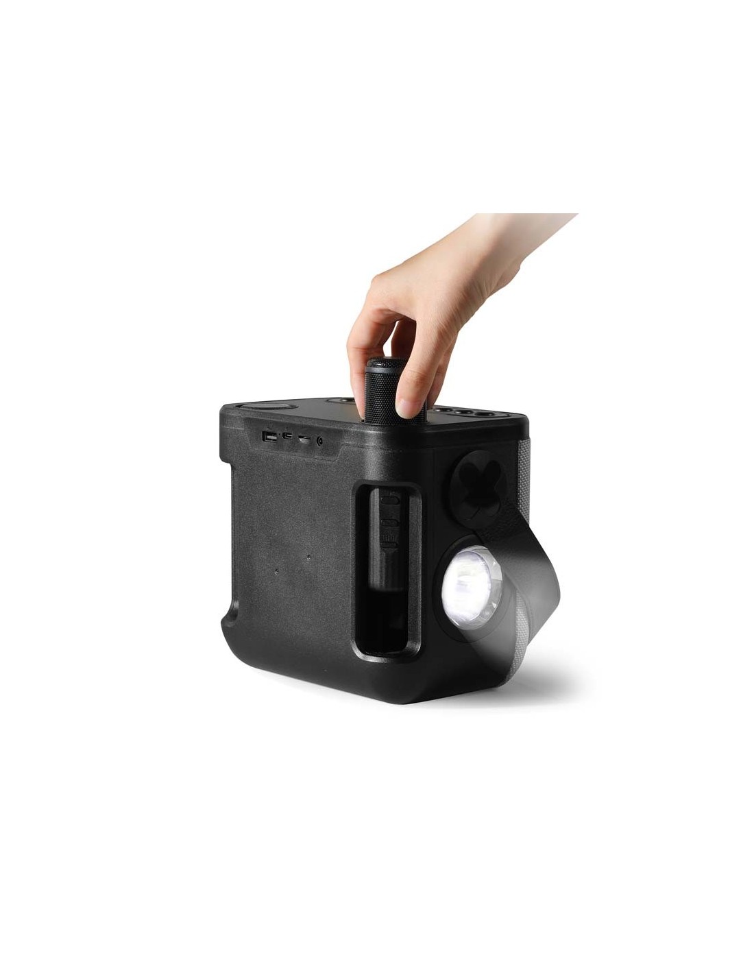 Les fonctionnalités karaoké incluent des effets de réverbération, d'écho, ainsi que des tonalités ajustables pour homme, femme, enfants et voix déformée. La lampe torche intégrée est parfaite pour les soirées en extérieur, et la poignée de transport permet de l'emmener facilement partout avec vous. Avec deux microphones sans fil inclus, vous pouvez chanter sur vos morceaux préférés ou avec les paroles en fond pour une expérience karaoké complète.