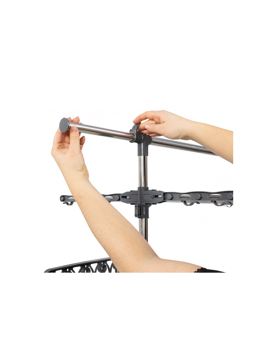 Enfin, pour répondre à toutes vos attentes l'étendoir de la marque Garnier est livré avec 48 clips, de 20 pinces à linge, de 4 supports pivotants pour cintres mais également 10 cintres en plastique antidérapants.
