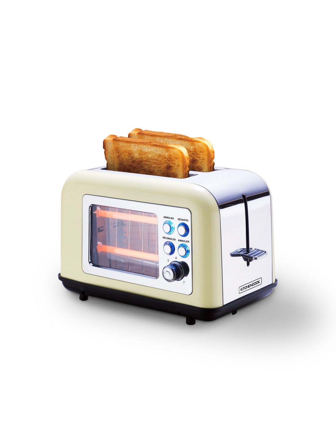 Découvrez le grille-pain TOASTEO GLASS BEIGE de KITCHENCOOK, le compagnon idéal pour des toasts toujours parfaits grâce à sa fenêtre transparente unique et son design élégant en métal beige.