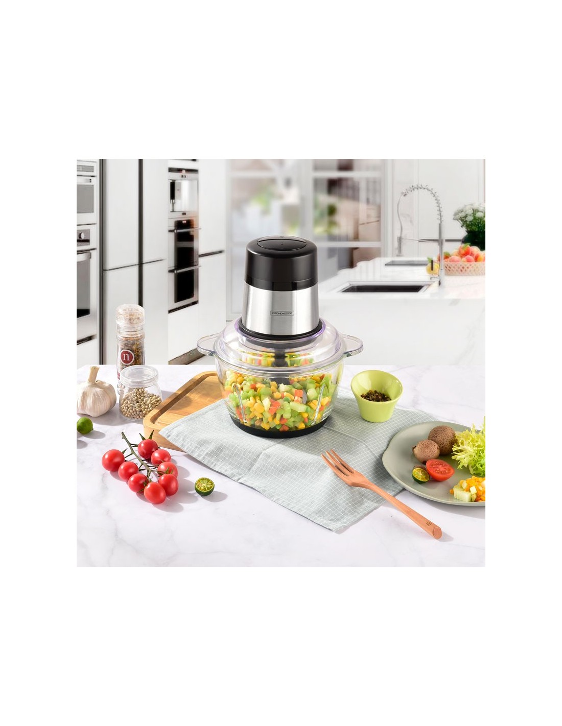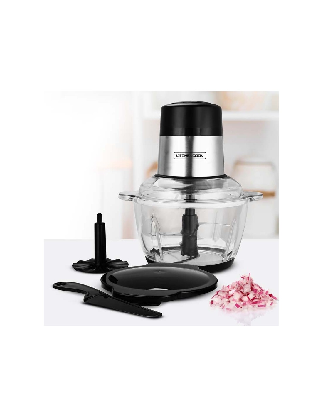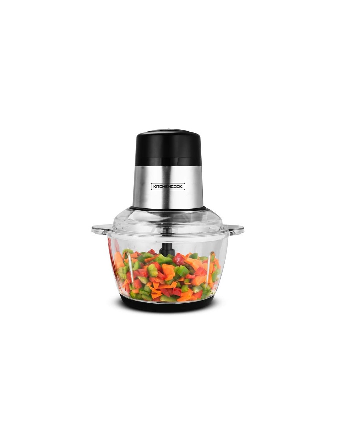Ce hachoir électrique MIXPOD2000 de Kitchencook avec ses 4 lames en acier inoxydable, son bol gradué et ses 2 vitesses vous permettra de mixer et hacher les légumes ou les viandes en toute facilité.
