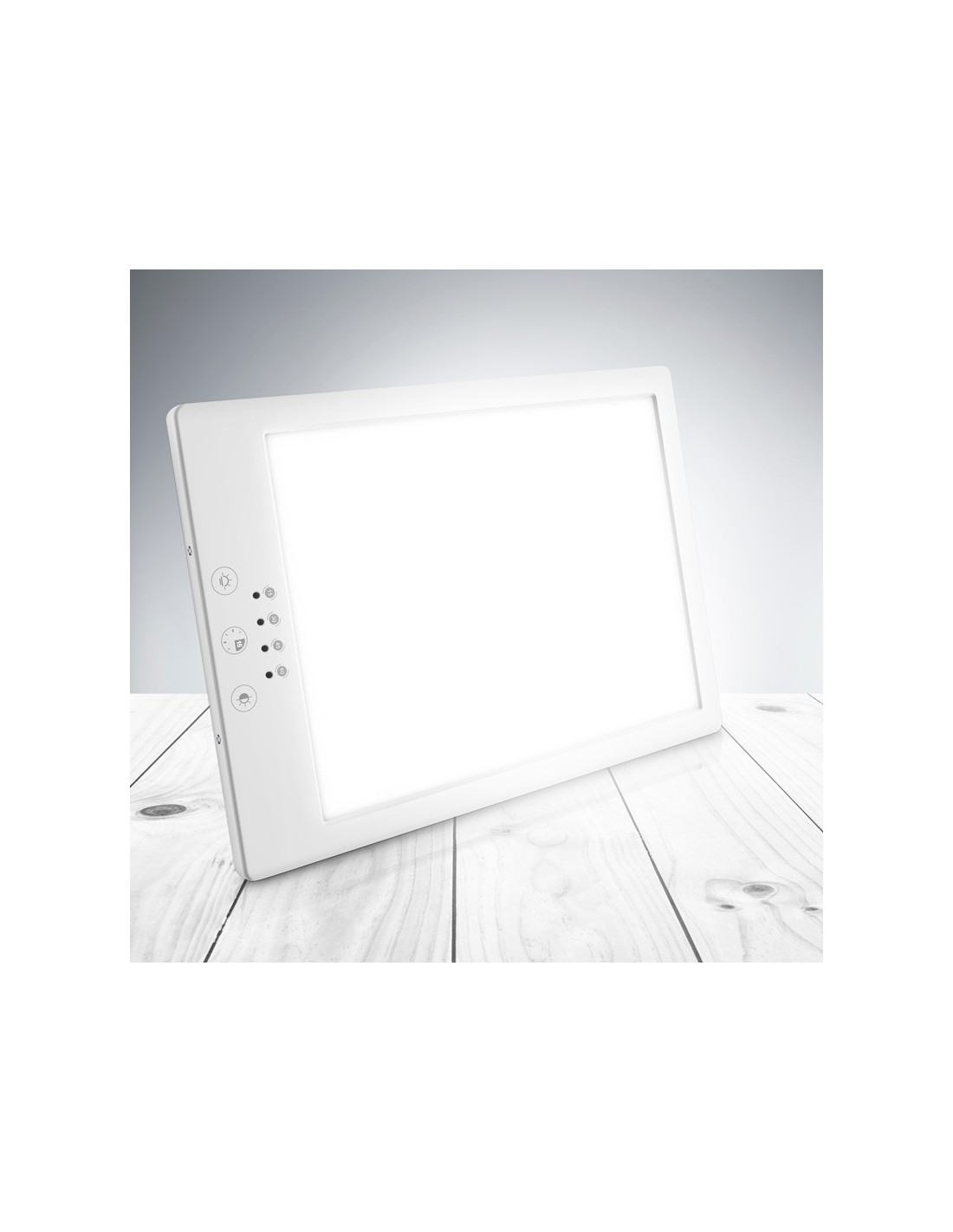 La surface lumineuse d'environ 23 x 13 cm a un éclat régulier et uniforme sans UV. De plus vous pouvez régler la durée d'utilisation de la tablette lumineuse LUM10 grâce à sa fonction minuterie (15-30-45-60min).