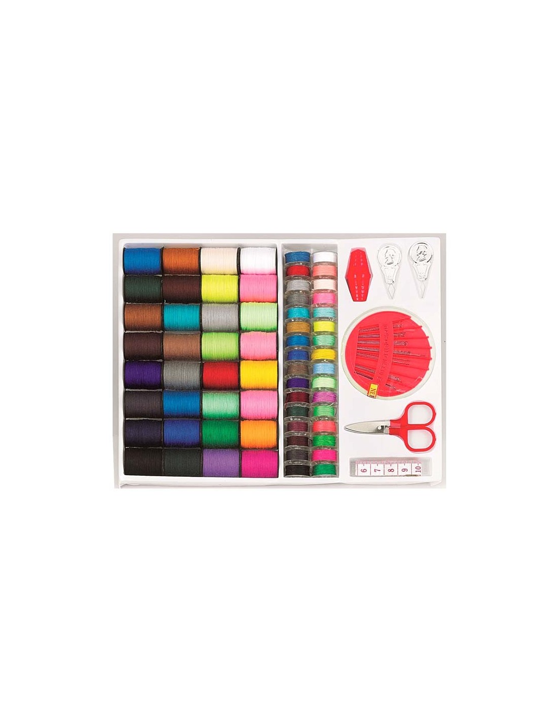 La machine à coudre est fournie avec un mini-kit d'accessoires indispensables à la couture pour une utilisation immédiate de la machine qui inclut : 4x bobines, 1x plaque de couture de bouton, 1x pied de biche à boutonnière, 1x enfile aiguille, 1x pied de biche pout fermeture à glissière, 1x tournevis, 2X aiguilles, 1x adaptateur, 1x pédale de commande antidérapante, 1x découseur, 1x broche porte-bobine, 32x bobines, 32 rouleaux de fil, 2x dé à coudre, 2x enfileurs, 1x boîte d'aiguilles, 1x ciseaux, 1x ruban à mesurer