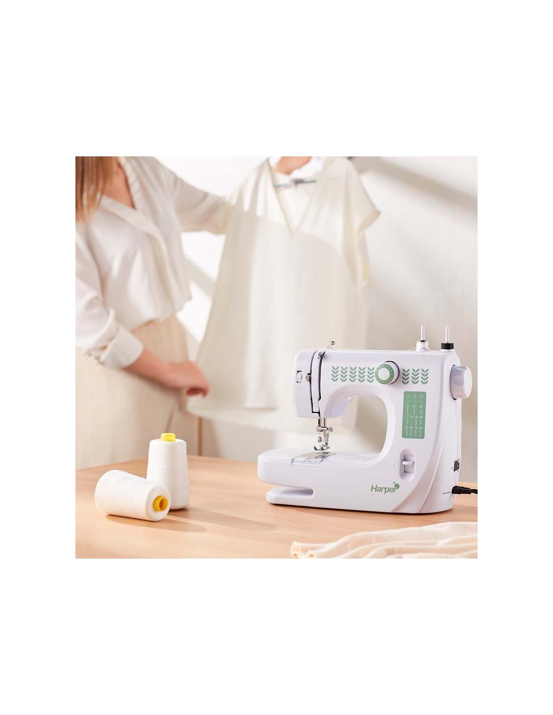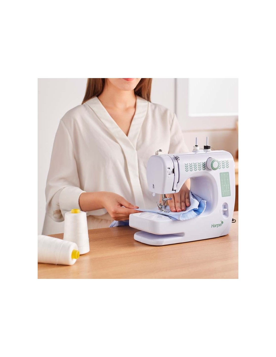 Profitez de la simplicité d'utilisation de la machine à coudre MAC214 de Harper grâce à son enfilage simplifié, sa fonction marche arrière, le contrôle par pédale antidérapante et la tension réglable du fil grâce à une canette horizontale qui vous évite les bourrages désagréables et maintien un fil parfaitement tendu. La longueur et la largeur des points de coutures sont préréglés.