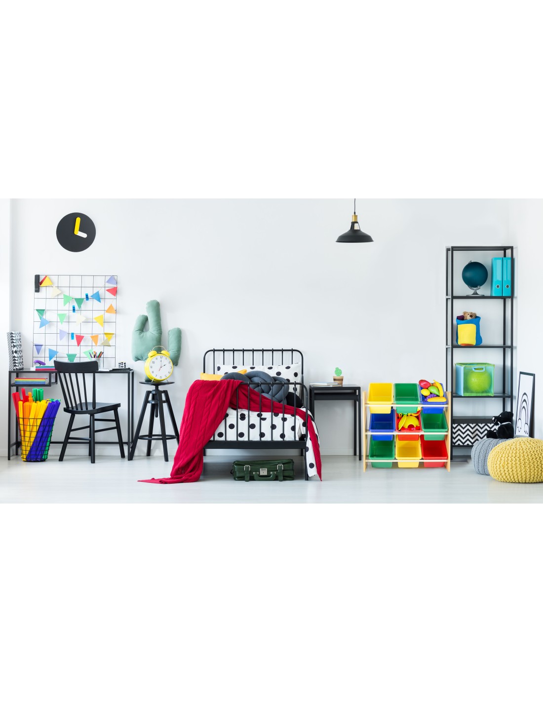 - 9 casiers de rangements amovibles de 4 couleurs en PP : 26.5x16.5x11cm /casier - 4.8L /casier - supporte jusqu'à 2kg