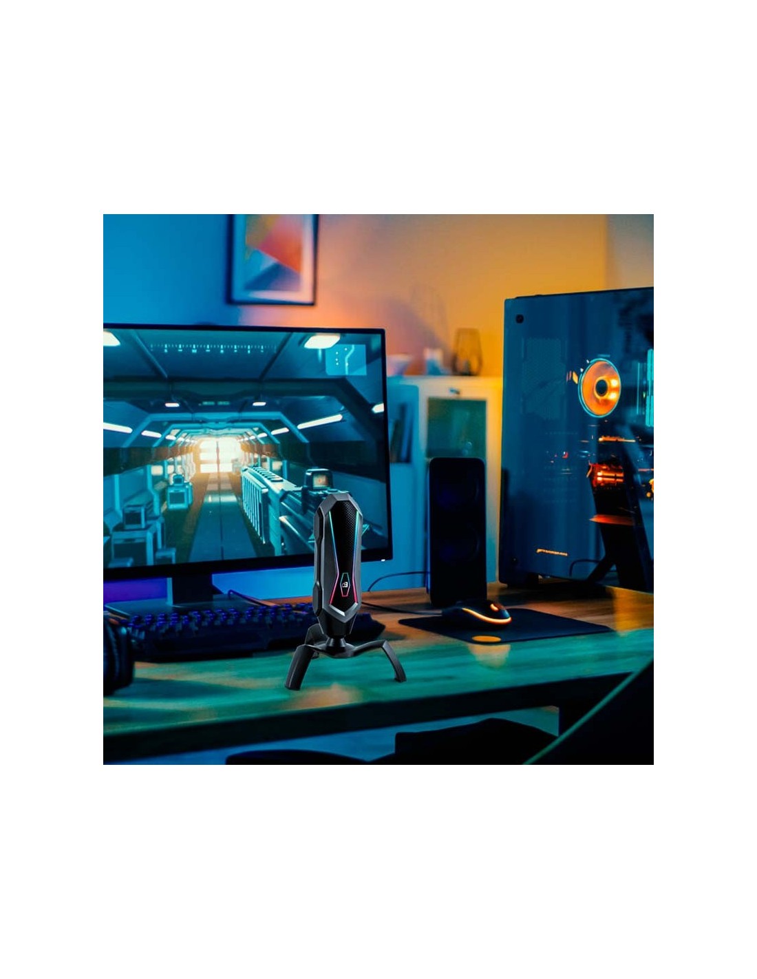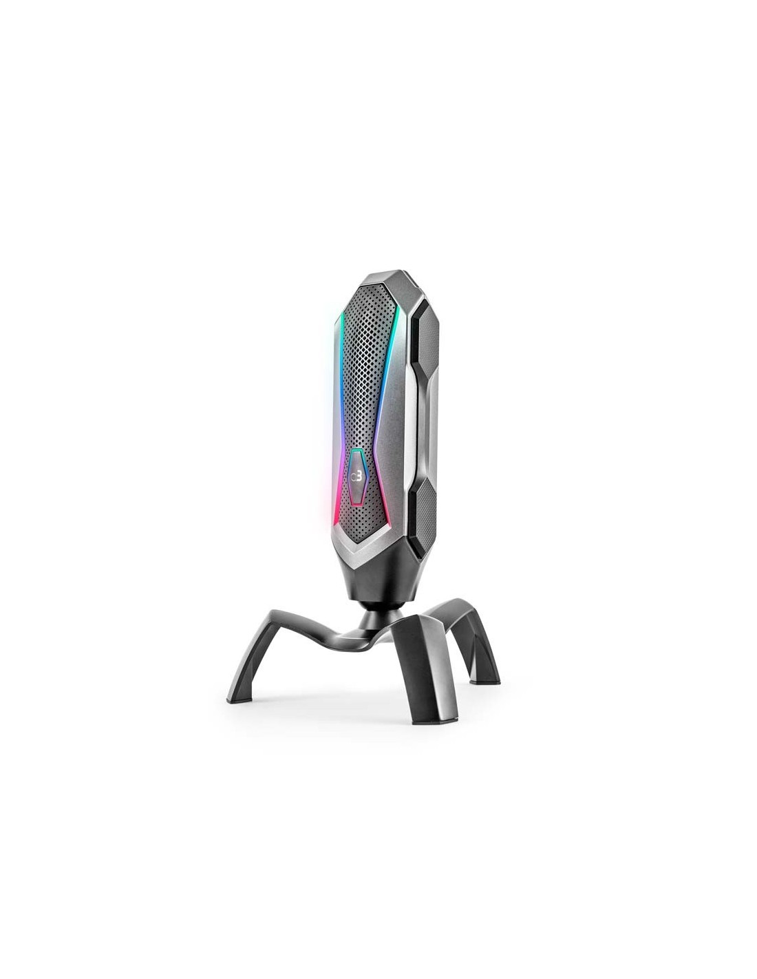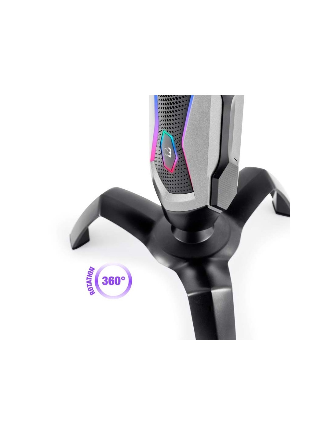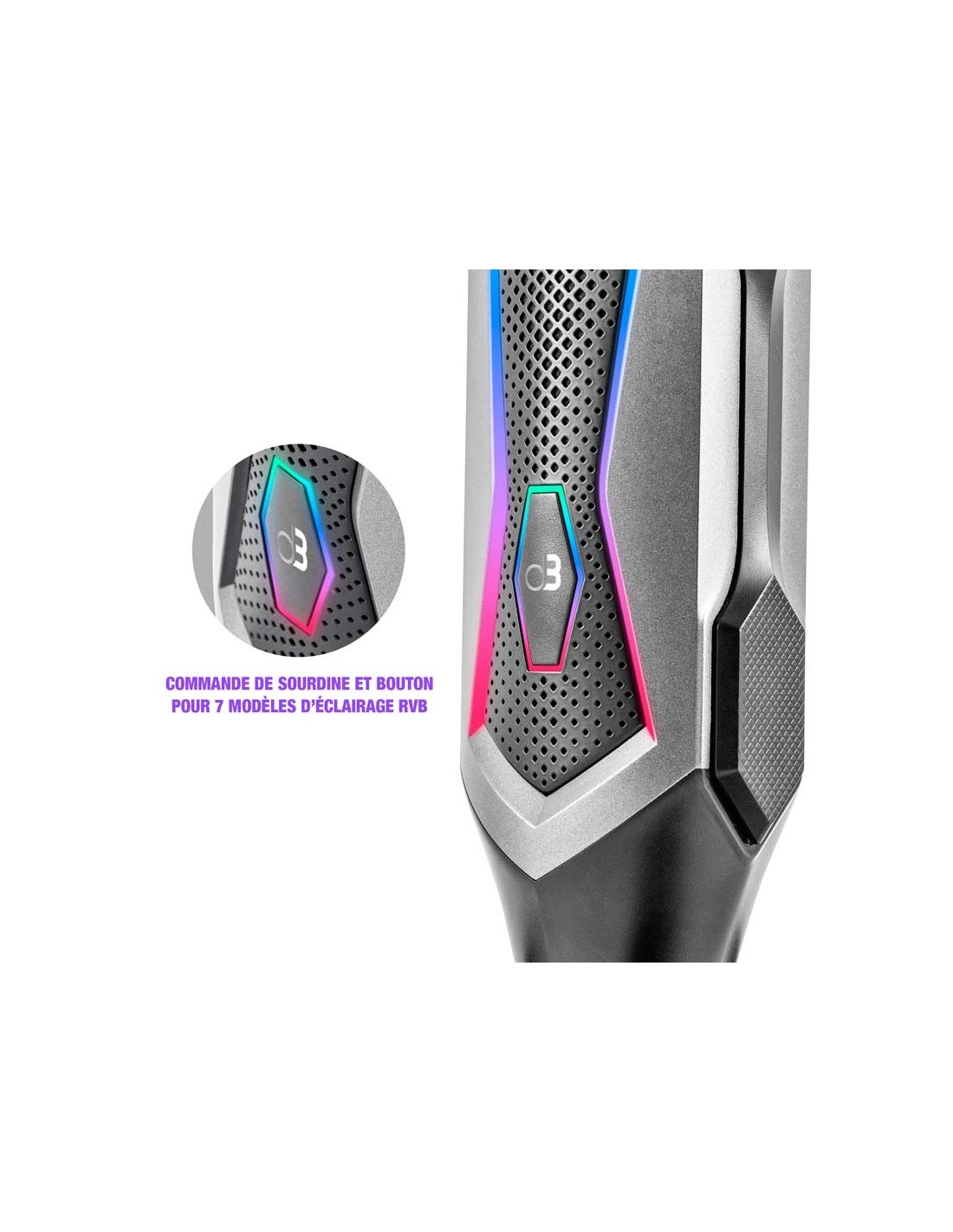 - Avec commande de sourdine et bouton pour choisir entre 7 modèles d'éclairage RVB