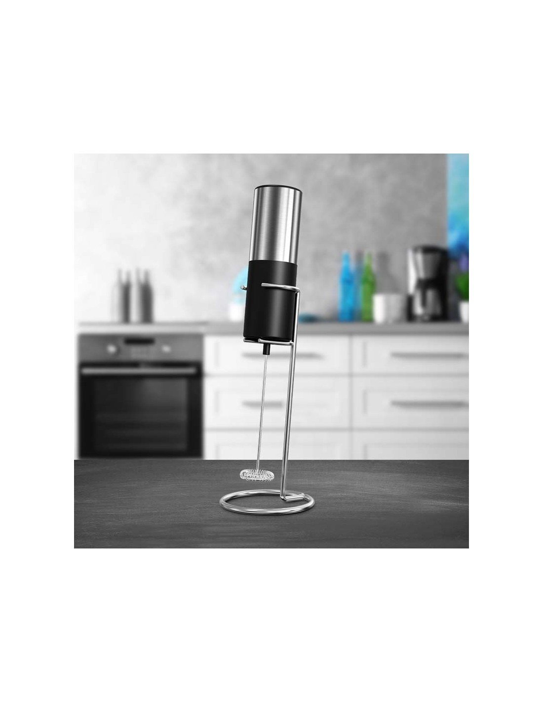 - Conseils d'utilisation : faites chauffer le lait. Hors du feu, inclinez légèrement le mousseur à lait et plongez-le dans le lait. Activez-le.