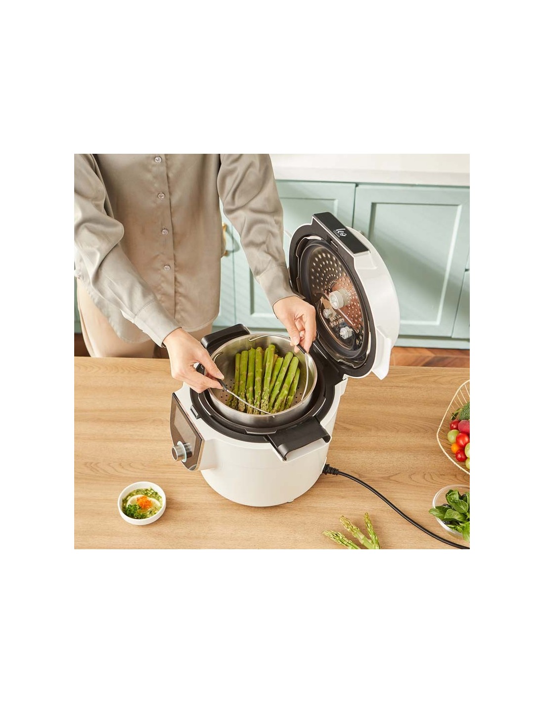 - Multifonction : cuisson traditionnelle (vapeur et bouillir), cuisson sous pression, cuisson par type d'ingrédients et recettes intégrées (cuire, mijoter, rissoler, réchauffer, rôtir), cuisson douce et maintien au chaud
