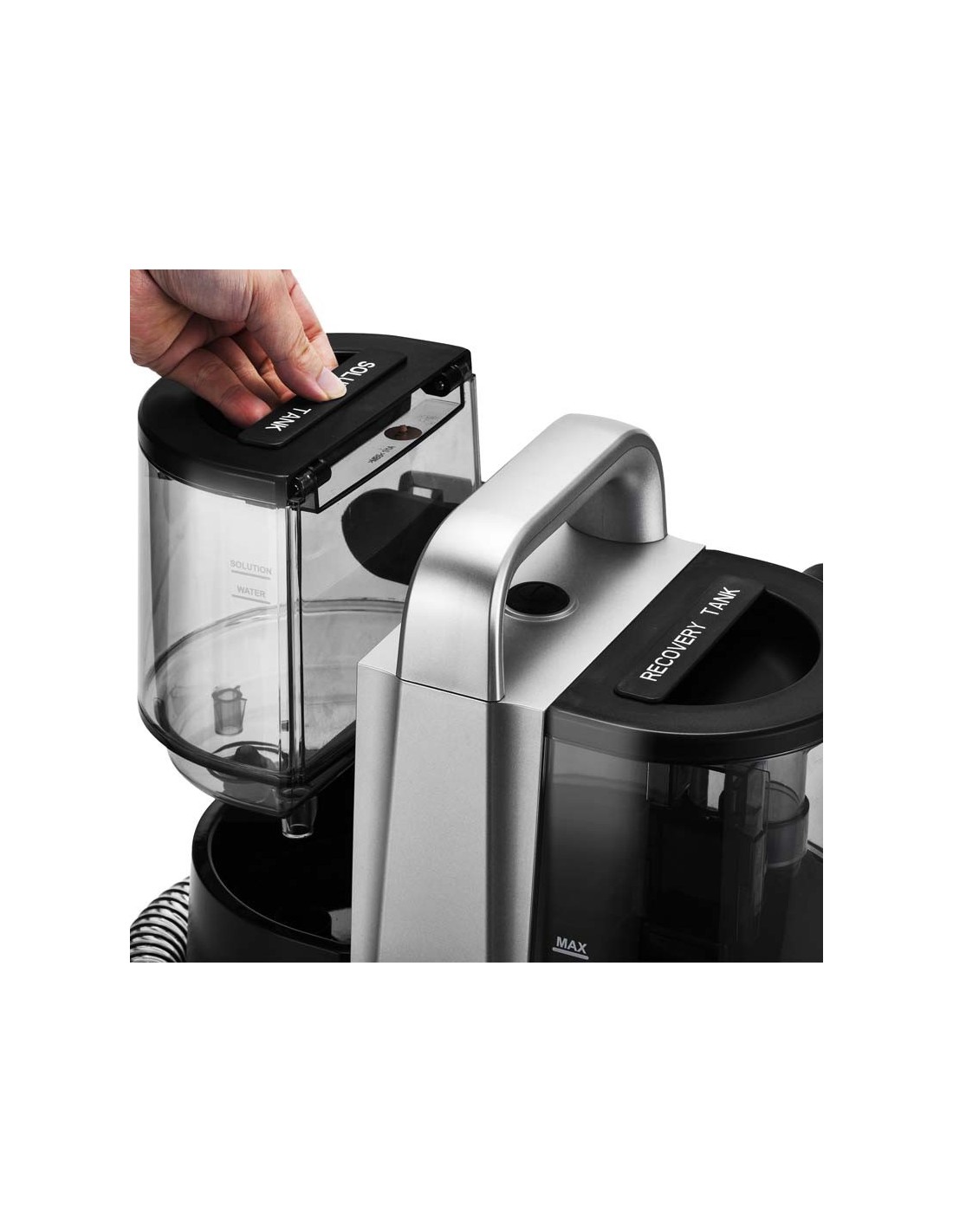 Technologie Dual Tank : réservoirs d'eau amovibles pour faciliter le remplissage et le vidage. Le système double réservoirs permet de nettoyer avec de l'eau propre alors que la saleté et la poussière sont stockés dans l'autre réservoir.