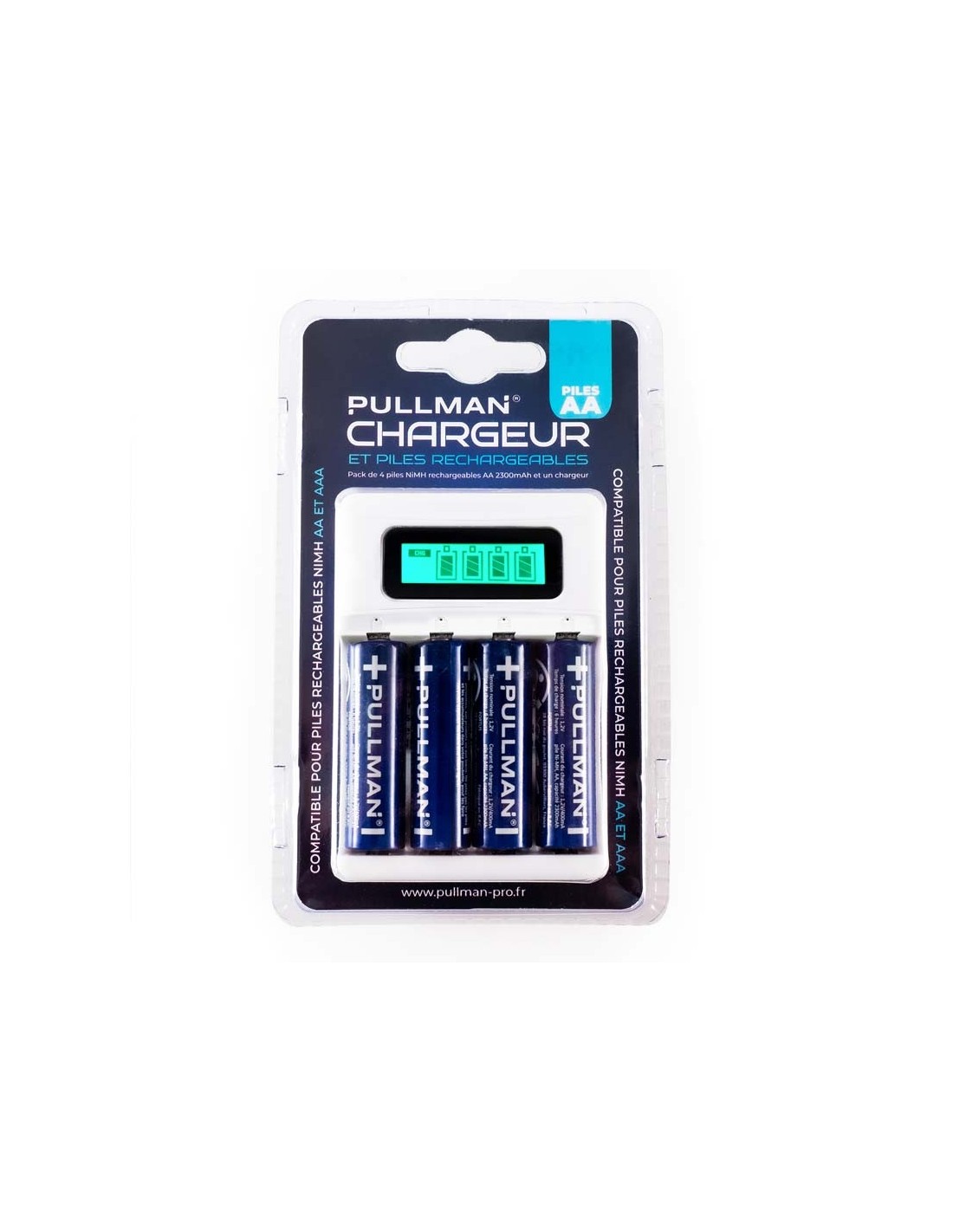 Optimisez votre énergie avec le pack POWERSET_AA de Pullman : 4 piles AA NiMH rechargeables de 2300 mAh et un chargeur intelligent. Chargez jusqu'à 4 piles simultanément en 6 heures avec écran LCD.