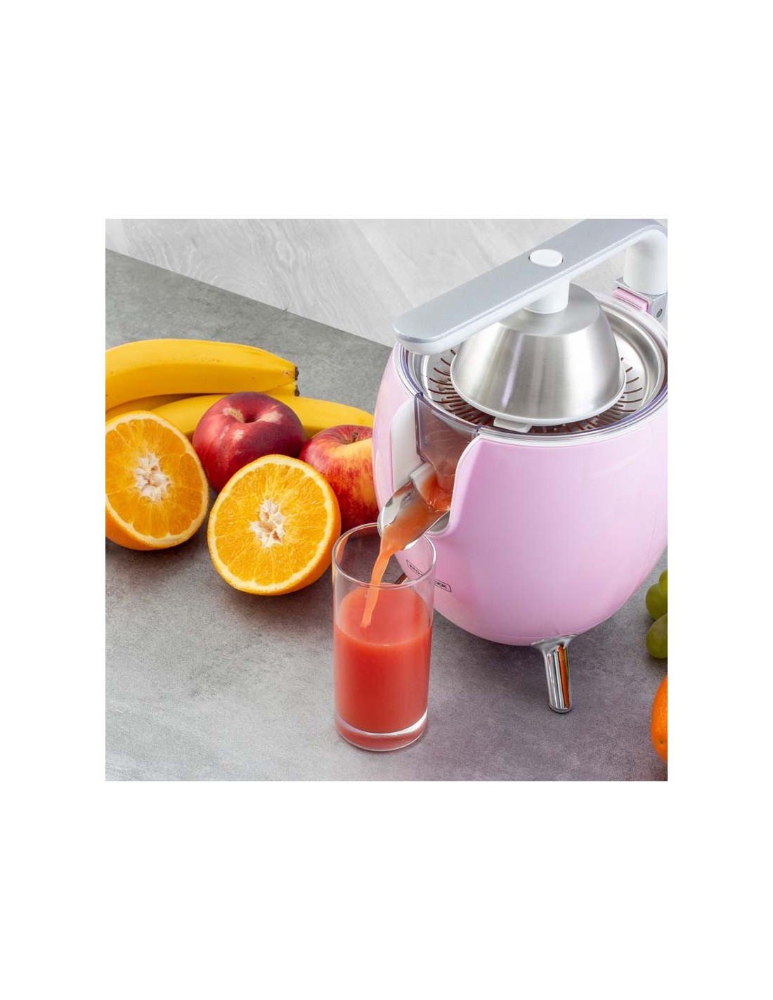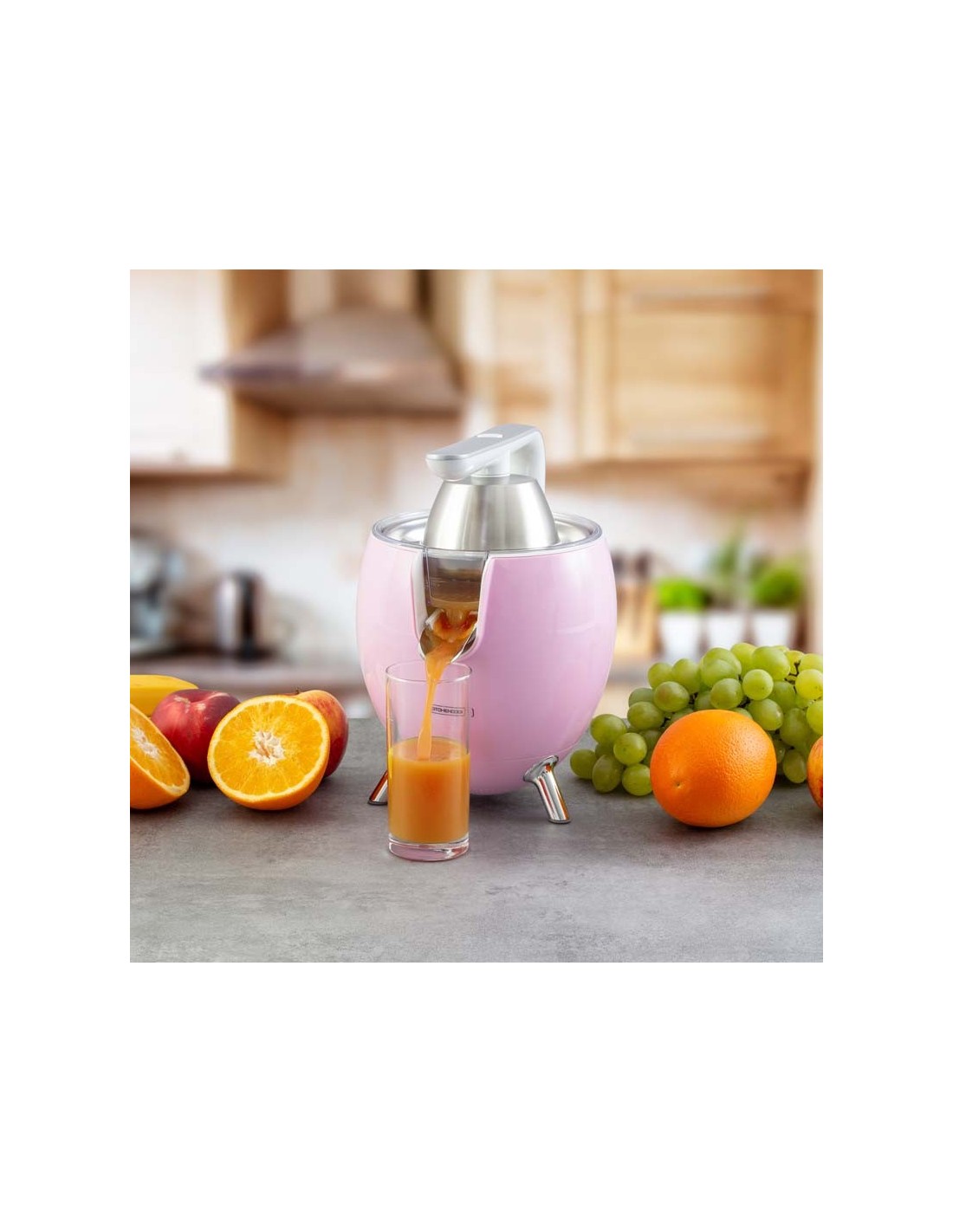Envie d'un jus frais le matin ? Le presse agrume électrique PRESSPOD ROSE de la marque Kitchencook est là pour vous.