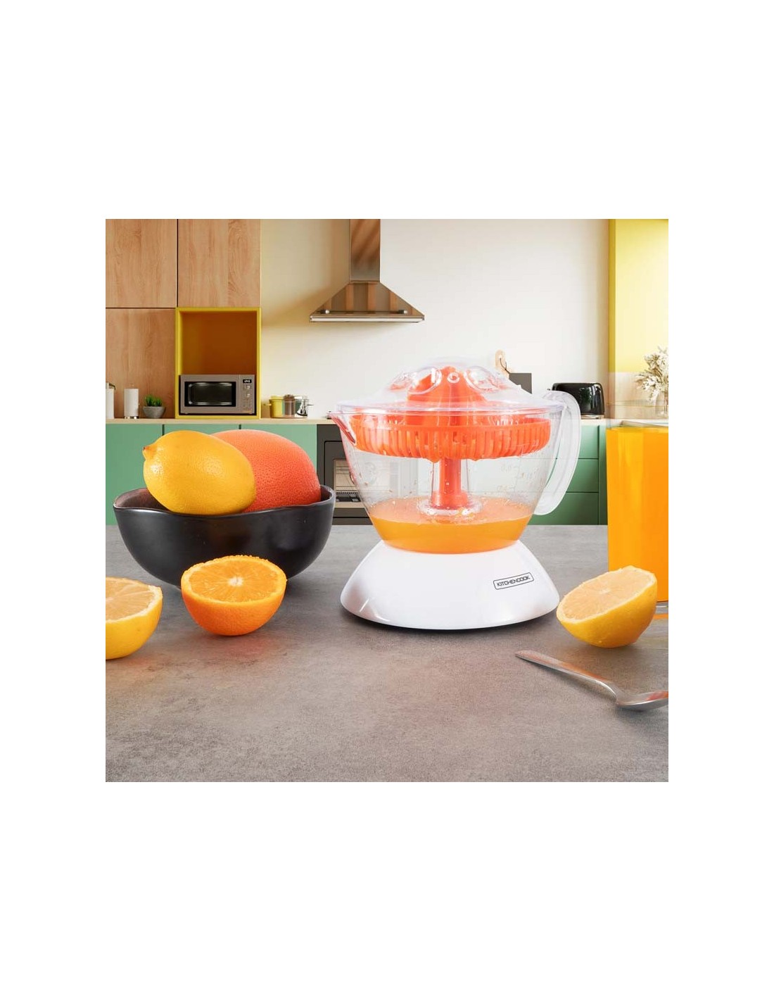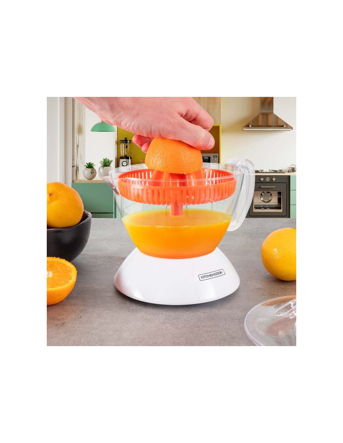Le presse-agrume électrique FIRSTPRESS de la marque Kitchencook offre une expérience de pressage de jus optimal, grâce à sa puissance maximale de 40 W. Son design ergonomique avec une poignée facile à prendre en main assure une utilisation confortable et pratique.