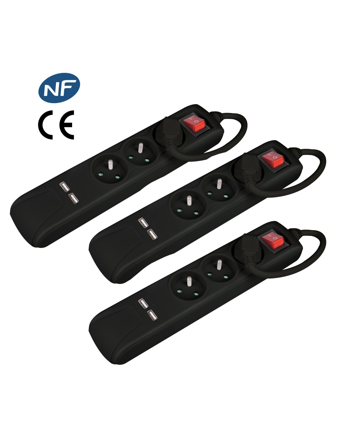Le lot de 3 multiprises FNBKU03_BLACK_X3 de Pullman allie fonctionnalité et élégance pour répondre à vos besoins d'alimentation.