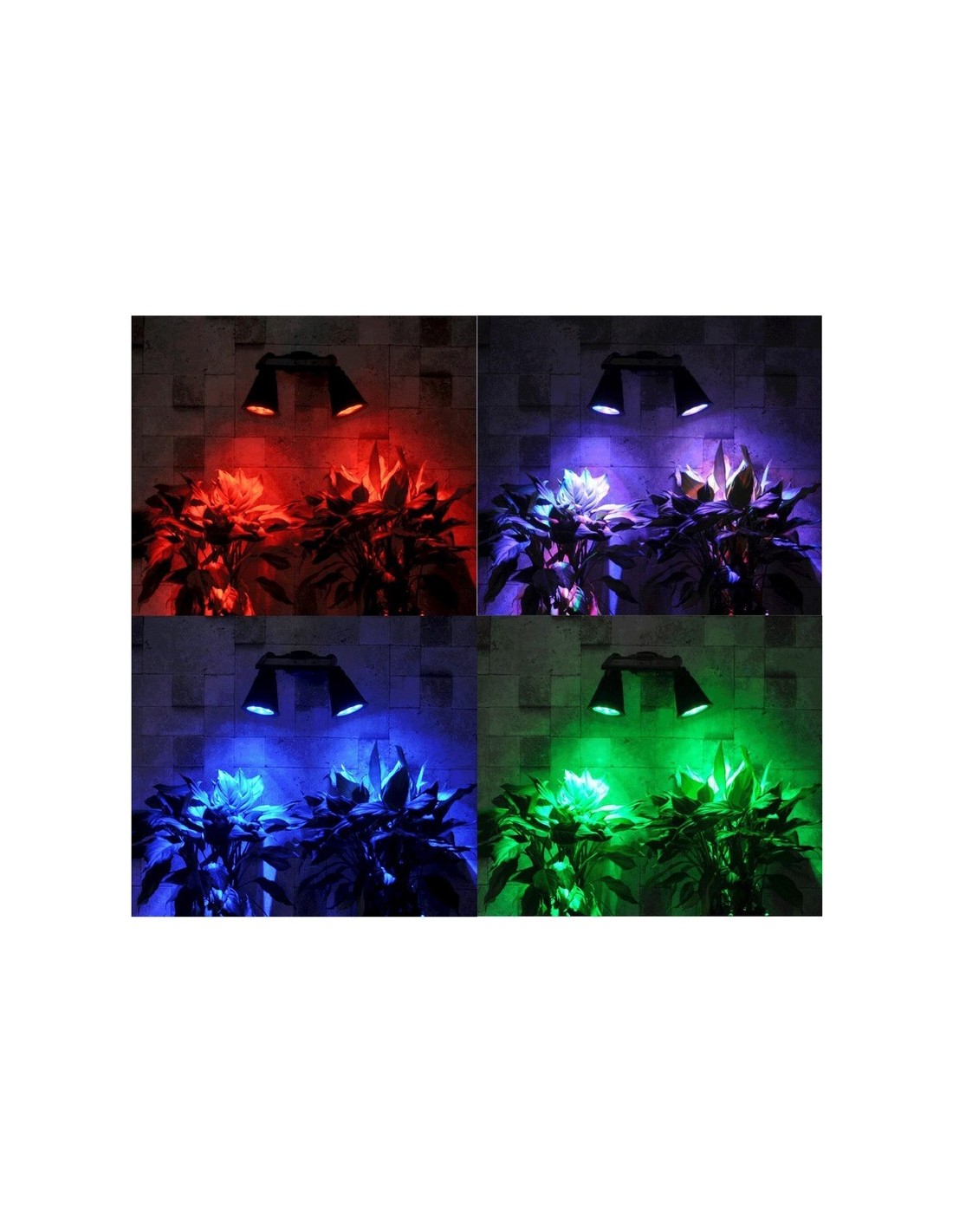 Les lumières rouge, verte, bleu et violette du double projecteur en feront voir de toutes les couleurs à votre extérieur !