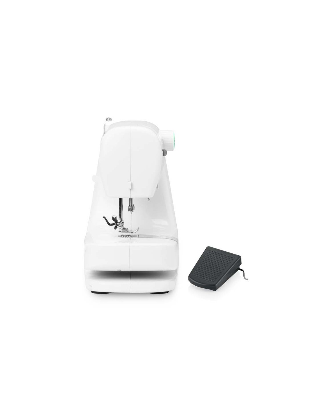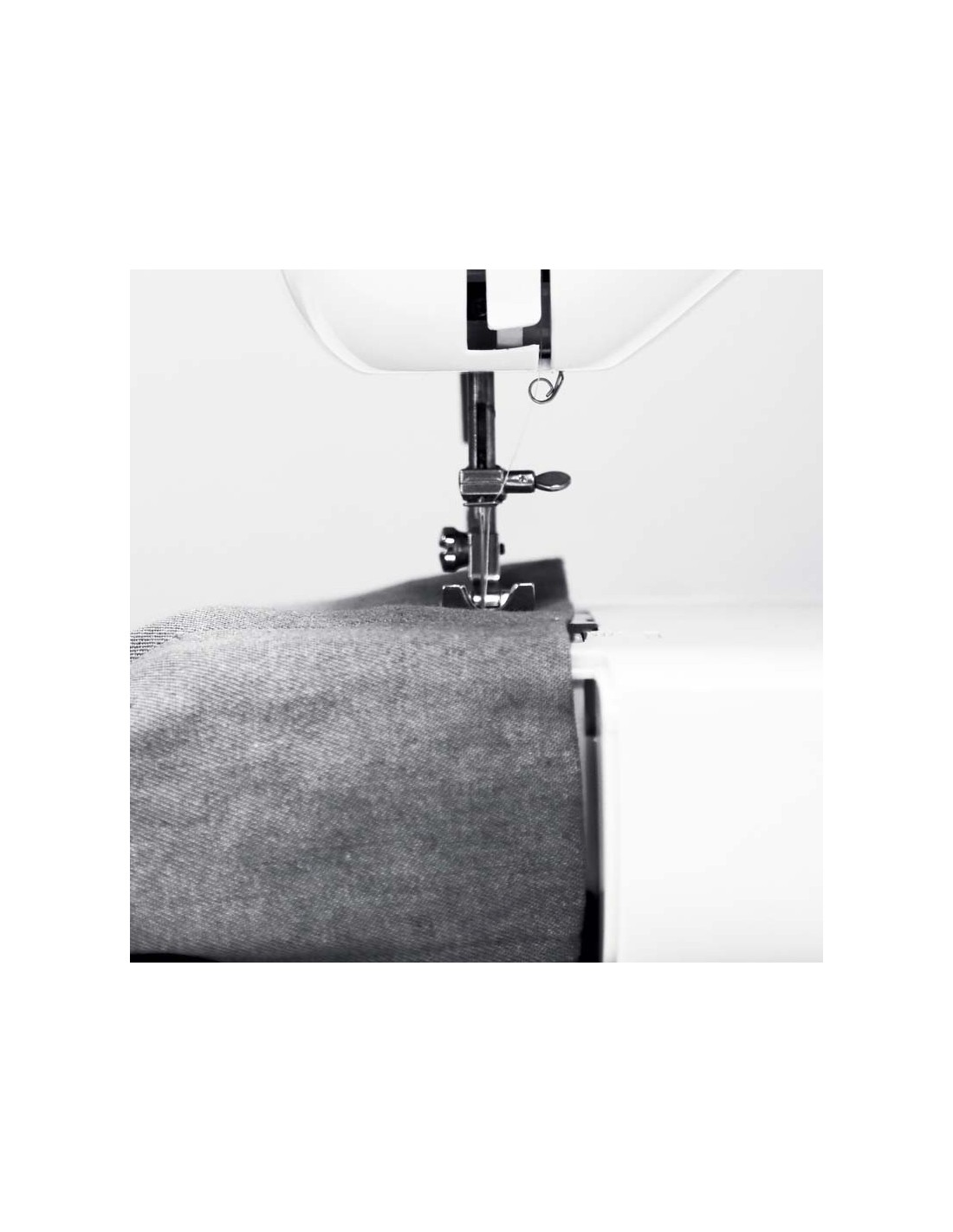 •Accessoires inclus : bobines x4, 14 aiguilles x3, double aiguille x1, enfile aiguille x1, plaque de couture de bouton x1, pied de biche à boutonnière x1, pied de biche pour fermeture à glissière x1, découseur x1, adaptateur x1, pédale de commande x1, broche porte bobine x1