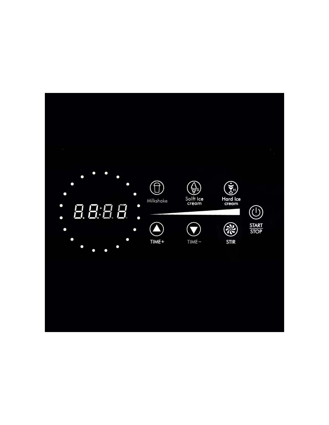 - 6 boutons pour faciliter la compréhension de la préparation : Le bouton de marche et d'arrêt de l'appareil, le bouton "glace molle" pour préparer les textures de glaces italiennes et milkshake, le bouton "glace dure" pour la préparation de glaces artisanales et sorbets, le bouton "mélanger" pour vos granités et enfin deux boutons de temps pour diminuer ou augmenter le temps de préparation à votre guise.