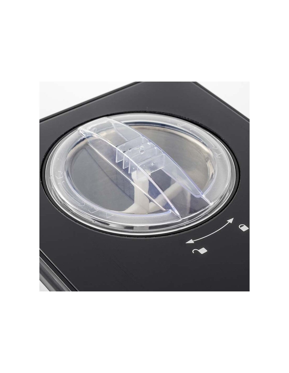 - Une fenêtre transparente dotée d'un couvercle vous permet d'ajouter des ingrédients et de vérifier la texture, pour suivre momentanément le déroulement.