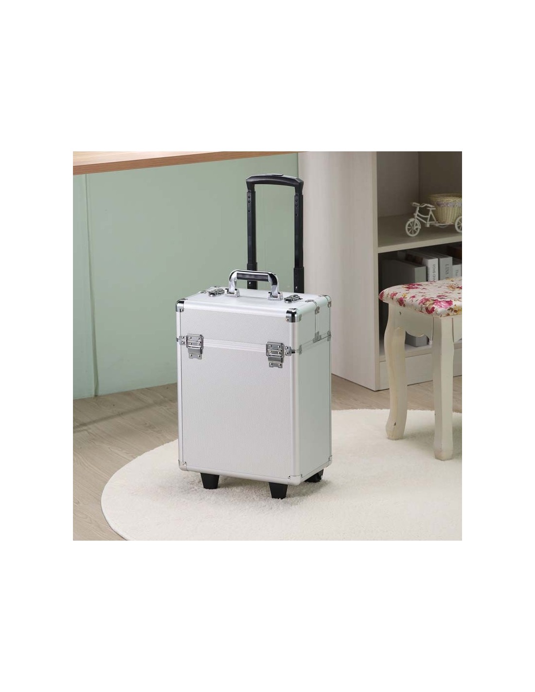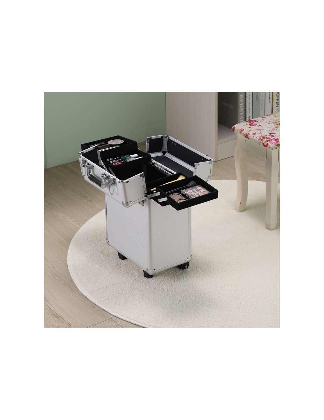 L'intérieur de la valise est conçu pour offrir une organisation pratique. Elle dispose de quatre plateaux rétractables coulissants pour les petits articles, mesurant chacun 13,9 x 17,9 x 3 cm, vous permettant de ranger vos produits de manière ordonnée. De plus, la doublure en feutre protège vos articles des chocs pendant le transport.
