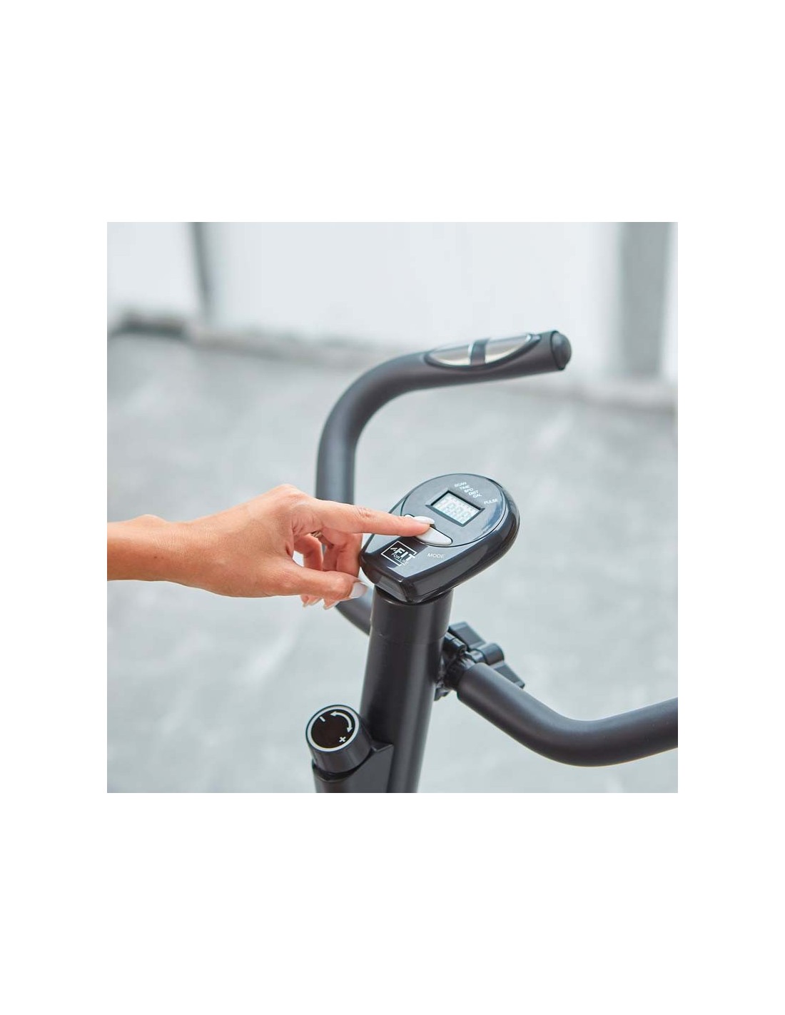 La difficulté peut être réglée avec le réglage manuel de la résistance. Le vélo est équipé d'une selle large et confortable et réglable sur 7 niveaux.